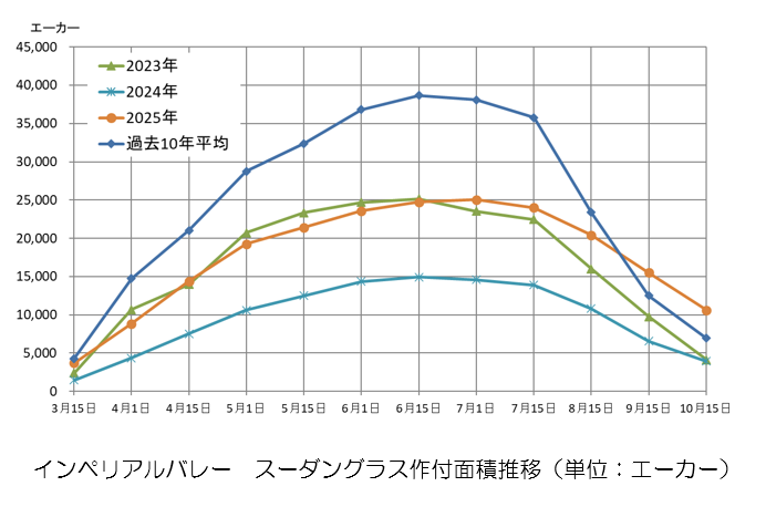 | スーダングラス | 主産地であるカリフォルニア州南部インペリアルバレーでは、25年産の収穫作業が終了しています。一部の輸出業者が保有していた旧穀在庫も解消されたことにより、25年産の作付面積は増加しましたが、産地相場の低迷が続き、生産農家の作付意欲が低下したため、2番刈を行わず1番刈で収穫を終了した圃場も多く見られました。